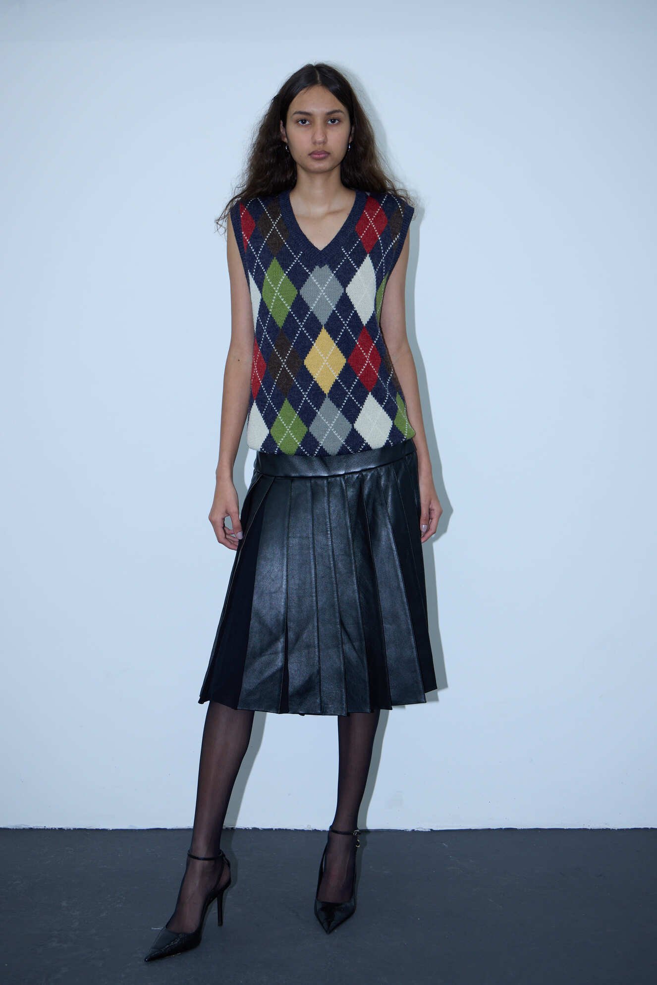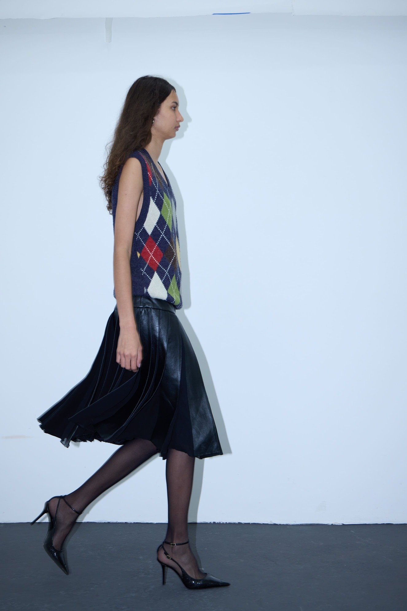 SAIA MID PLISSADA DE COURO COM SEDA REINALDO LOURENÇO